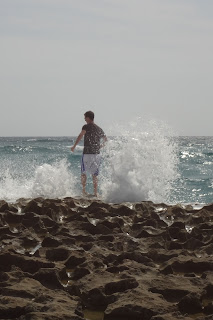 It. was. gorgeous. Oh my. Sicily and I conquered some of our ocean fears because the water was so crystal clear. We all splashed and swam and played in the sand. We went exploring, wandering up the coast to a strip of volcanic rock that projected into the sea. We laid in the sun and read, Shantel was buried in a monstrous sand shark exploding from the shore, and we enjoyed ourselves thoroughly in this slice of tropical paradise. Unfortunately, most people got burned. I had a bit on my scalp and the tops of my shoulders, but Marc eventually turned purplish on his legs, Cicely's back blistered a bit, and Chantel was pink all over. It wasn't all carelessness, but a strong sun and a long time out.